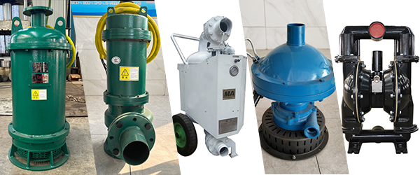 公司主要产品有矿用隔爆型潜水排沙泵、潜污水电泵及风动潜水泵、气动隔膜泵、气动清淤泵三大类10个系列200余个型号规格。
